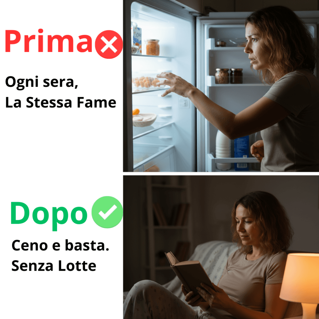 Senti controllo e sazietà naturale dove c'era quella voce che ti trascinava verso il cibo ogni sera dopo cena.