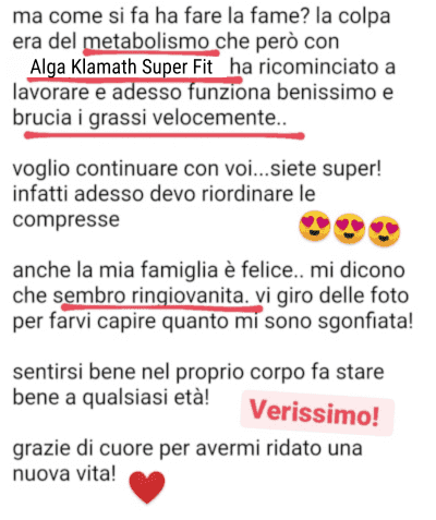 Abbiamo consigliato a Rita di provare L' ALGA KLAMATH Burn Plus per vincere una volta per tutte la battaglia con il suo peso