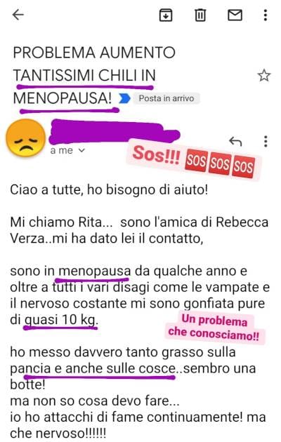 Come il 79,3% delle donne italiane in Menopausa, anche Rita era tormentata dai chili di troppo Circa 4 mesi fa ci ha scritto Disperata...